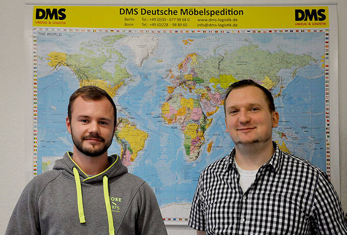 Herr Scholz (Foto links) ist nach einem sehr guten Abschluss seiner Berufsausbildung in den Bereich DMS International übernommen worden. Er ist für die Abwicklung der Importumzüge zuständig. Auch betreut er das neue Geschäftsfeld der Zentrale »Sammelcontainer USA«.