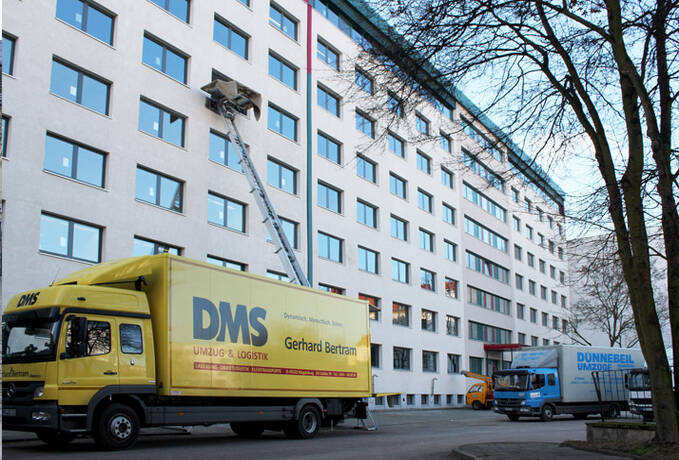 »Beim Landtagsumzug musste jede Fraktion getrennt behandelt werden. Eine Akte der Regierungspartei durfte nicht bei der Opposition landen – und umgekehrt auch nicht.« erklärt Uwe Hübener von der Firma Bertram. »Es gehört aber zu unserem Tagesgeschäft, dass jeder Arbeitsplatz nach einem Umzug geordnet und sortiert am Bestimmungsort landet. Und so wurde auch der Landtag erfolgreich verlagert.«