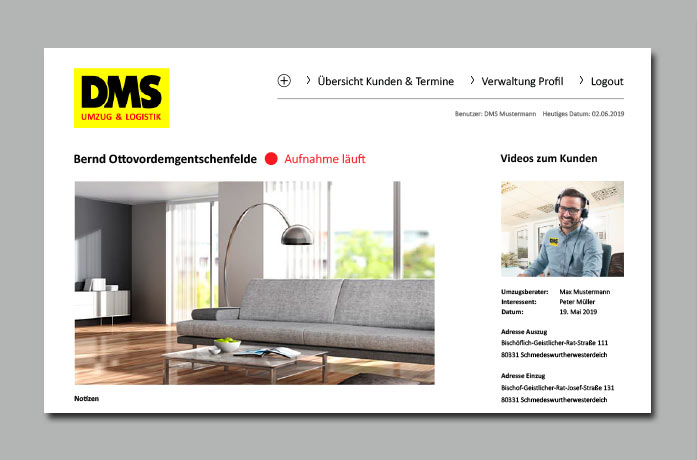 7. In einer Verwaltung kann der Umzugsberater alle Kundendaten und Videos einsehen.