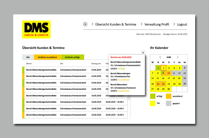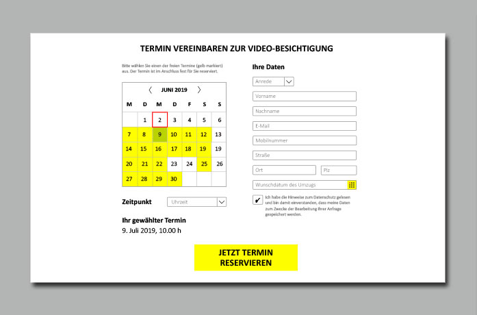In wenigen Wochen wird das neue Tool für eine Video-Besichtigung mit Umzugskunden bereitgestellt. Die Anwendung ermöglicht es, dass sich DMS-Betriebe auf eine Videokonferenz mit Umzugskunden verabreden.